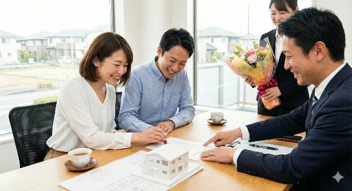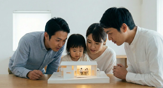 屋根を外せば、間取り・動線・家具配置が一目瞭然。平面図やパースでは「なんとなく良さそう」だった提案が、模型を囲んだ瞬間に「ここにソファを置いて、朝はこの動線で…」と具体的な暮らしの会話に変わります。施主様自身が「住むイメージ」を掴んだとき、商談は一気に前に進みます。